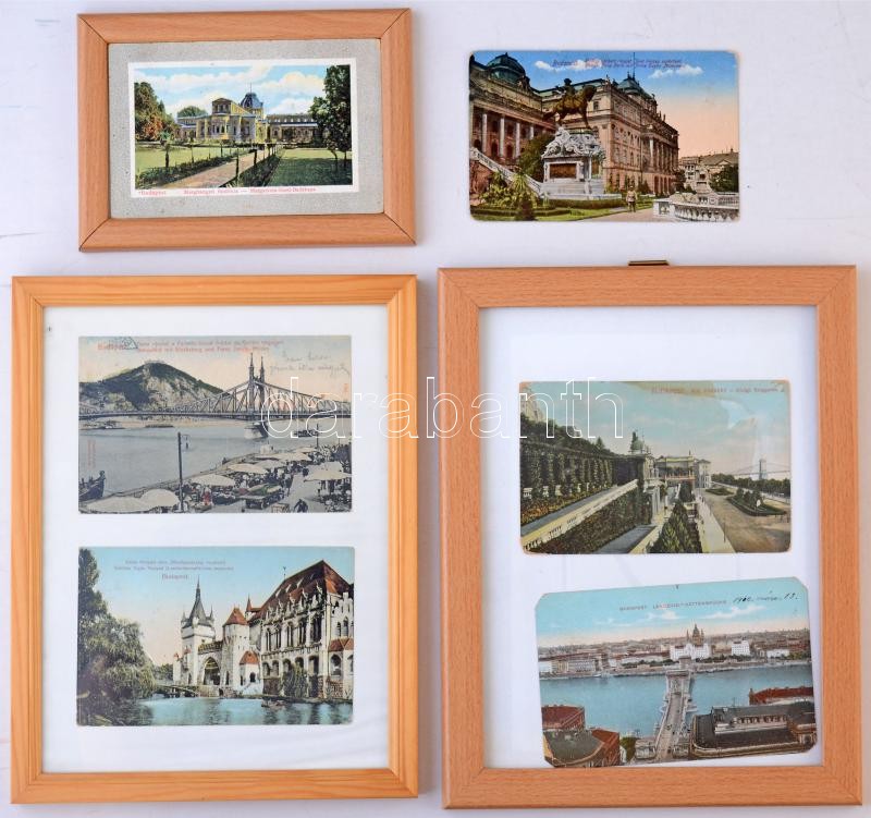 Budapest – 5 db régi képeslap bekeretezve + 2 régi képeslap