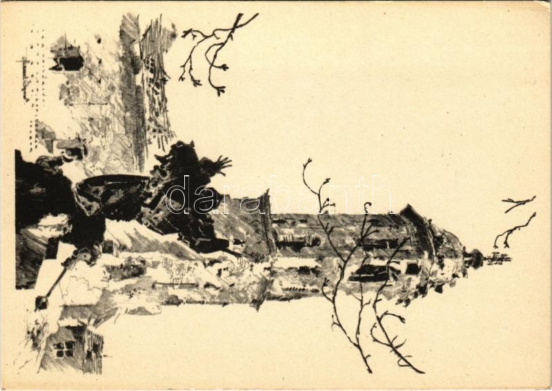 Budapest I. Helyőrségi templom és Kapisztrán szobor romjai; Második világháború utáni romok. Felelős kiadó: Jánossy Árpád s: Pfannl Egon (EK)<a href="https://www.darabanth.com/hu/gyorsarveres/422/kategoriak~Kepeslapok/Magyarorszag~1500004/Budapest-I