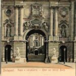 Budapest I. Kapu a várudvarra (épület Ferenc József uralkodása alatt). Taussig Arthur 3038.<a href="https://www.darabanth.com/hu/nagyaukcio/38/kategoriak~Kepeslapok/Magyarorszag~15644/Budapest-I-Kapu-a-varudvarra-epulet-Ferenc-Jozsef-uralkodasa-alat