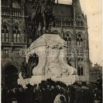 Budapest V. Andrássy szobor az Országház előtt. Hátoldalon Wágner a ‘Hangszer-Király’ reklám (EK)