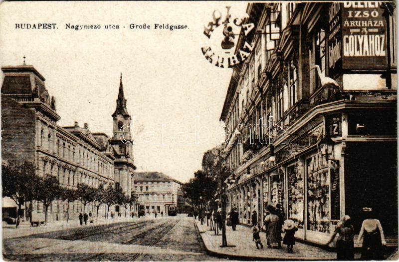 Budapest VI. Nagymező utca, villamos, Gólya áruház (EK)