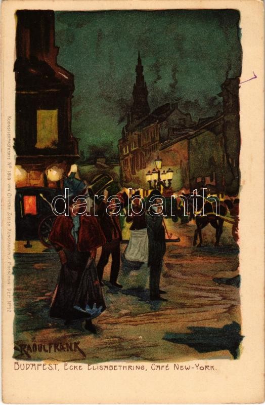 Budapest VII. Erzsébet körút sarka, New York kávéház, este / Ecke Elisabethring, Café. Künstlerpostkarte No. 1849. von Ottmar Zieher litho s: Raoul Frank<a href="https://www.darabanth.com/hu/gyorsarveres/415/kategoriak~Kepeslapok/Magyarorszag~100000