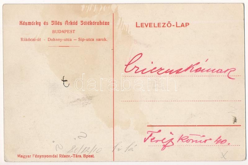 Budapest VII. Késmárky és Illés Árkád Bazár Játékáruháza, Rákóczi út, Dohány utca és Síp utca sarok (Erzsébetváros), belső (fl)<a href="https://www.darabanth.com/hu/gyorsarveres/417/kategoriak~Kepeslapok/Magyarorszag~1500004/Budapest-VII-Kesmarky-es