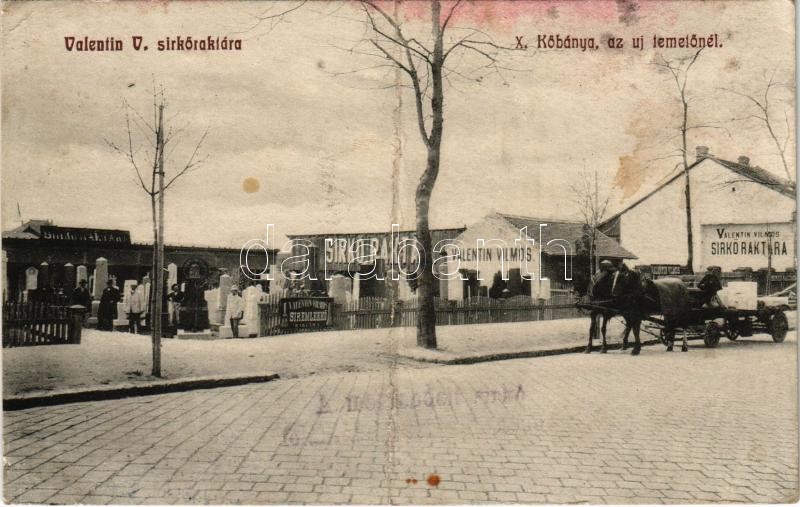Budapest X. Kőbánya, Valentin Vilmos sírkő és síremlékkő raktára az új temetőnél (fa)
