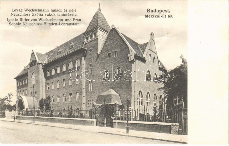 Budapest XIV. Lovag Wechselmann Ignác és neje Neuschloss Zsófia (Zsidó) Vakok Tanintézete. mexikói út 60.