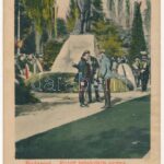 Budapest XIV. Városliget, Rudolf trónörökös szobra. 1908-as felavatási ünnepség Ferenc Józseffel és nemesekkel. Taussig A. 10473. (fl)