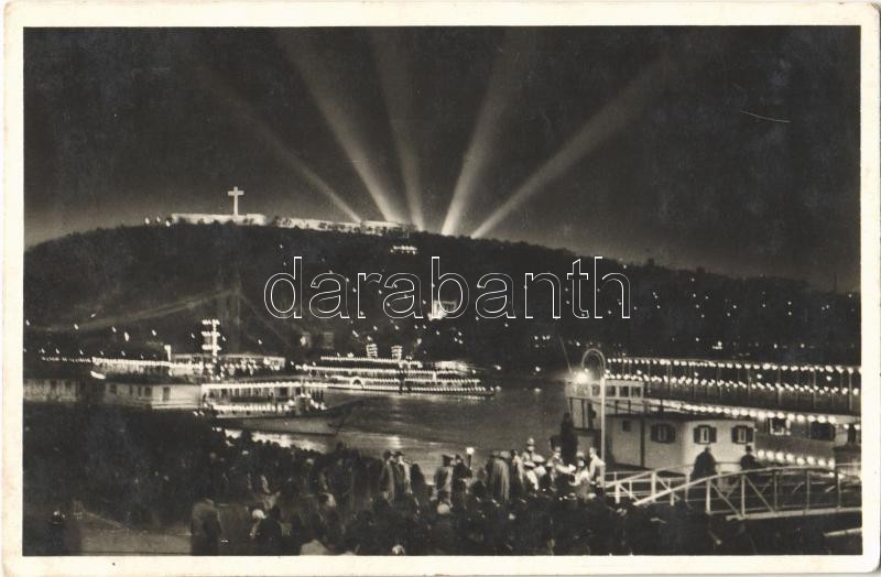 Budapest, XXXIV. Nemzetközi Eucharisztikus Kongresszus, esti hajófelvonulás a Dunán<a href="https://www.darabanth.com/hu/gyorsarveres/415/kategoriak~Kepeslapok/Magyarorszag~1000005/Budapest-XXXIV-Nemzetkozi-Eucharisztikus-Kongresszus-esti-hajofelvon