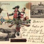 Cacao Suchard, Schaffhouse, Chute du Rhin / Suchard cocoa advertisemeent card. floral, coat of arms, litho (fl)