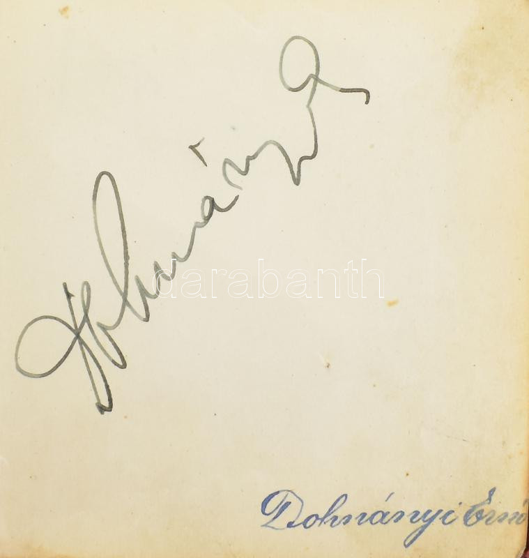 ![cca 1929-1980 Aláírás-gyűjtemény, főleg zenészek, énekesek és színészek aláírásaival, köztük: Bajor Gizi színésznő, Dohnányi Ernő zeneszerző, Sergio Failoni karmester, Kerpely Jenő csellőművész, Petheő Attila színész, Márkus Dezső karmester, Mensáros László színész, Uray Tivadar színész, Székely Mihály operaénekes, Tímár József színész, Vándory Gusztáv színész, Kulka János színész, Basilides Mária operaénekesnő, Beregi Oszkár színész, Baktay Ervin orientalista, Antal Imre színész, humorista, Simándy József operaénekes, Rajcsányi László kardvívó, Sinkovits Imre színész, Major Tamás színész, Lamberto Gardelli karmester, Fischer Annie zongorista, Igor Ozim hegedűművész, Igor Markevitch zeneszerző, Melis György operaénekes, l m s r d [beadó közlése szerint: az illető nem tudta az adott hangsor leszolmizálni, ezért nem írta alá rendesen, hanem csak így], Ferencsik János karmester, Serge Prokofieff (Sergei Prokofiev) zeneszerző, Bartók Béla zeneszerző, Róna Viktor koreográfus, táncművész, Jávor Pál színész, Darvas Iván színész, P. Márkus Emília színésznő, valamint Kisfaludi Strobl Zsigmond szobrászművész és még sokan mások. Kb. 120-130 aláírással. Vászon noteszbe írva, kopott borítóval, 9x9](https://mutargy.com/wp-content/uploads/2025/04/10881.jpg)