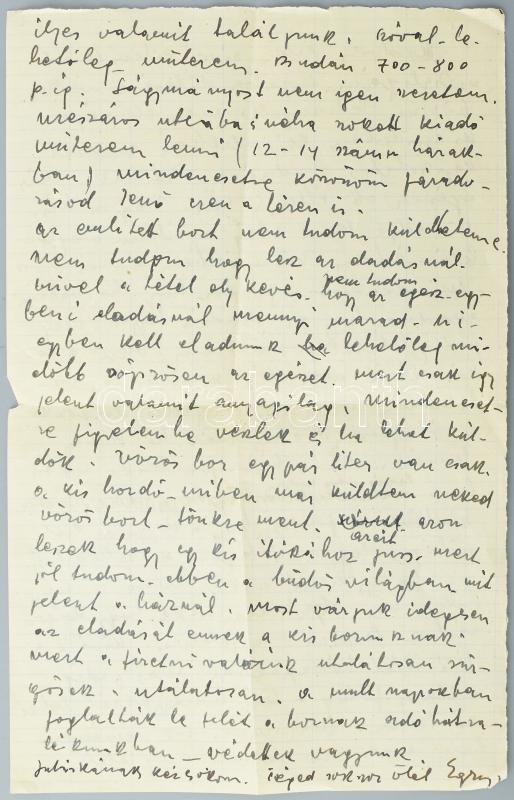 cca 1940 Egry József (1883-1951) festőművész autográf levele Halápy Jenőhöz (?-1950), Halápy János festőművész testvéréhez, amelyben egy budai műterem kereséséről ír. Más egyéb érdekes részlettel, két kézzel írt oldal, Egry József autográf