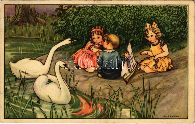 Children art postcard, swans. CCM 2625. s: D. Gobbi (EK)<a href="https://www.darabanth.com/hu/gyorsarveres/421/kategoriak~Kepeslapok/Gyerek~1500023/Children-art-postcard-swans-CCM-2625-s-D-Gobbi-EK~II2675073/?utm_source=affiliate&utm_medium=mutargy&