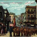 Constantinople, Istanbul; La Place de Karakeui / Karaköy square, military parade, Yorkshire, Hanatua