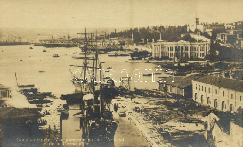 Constantinople, Istanbul, Stamboul; Vue panoramique de l’Arsenal et de la Corne d’Or / arsenal, bay, harbour, ships<a href="https://www.darabanth.com/hu/gyorsarveres/417/kategoriak~Kepeslapok/Torokorszag~1500091/Constantinople-Istanbul-Stamboul-Vue-