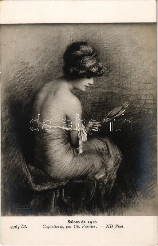 Coquetterie / Erotic lady art postcard. Salons de 1910 Paris. ND Phot. s: Ch. Vasnier