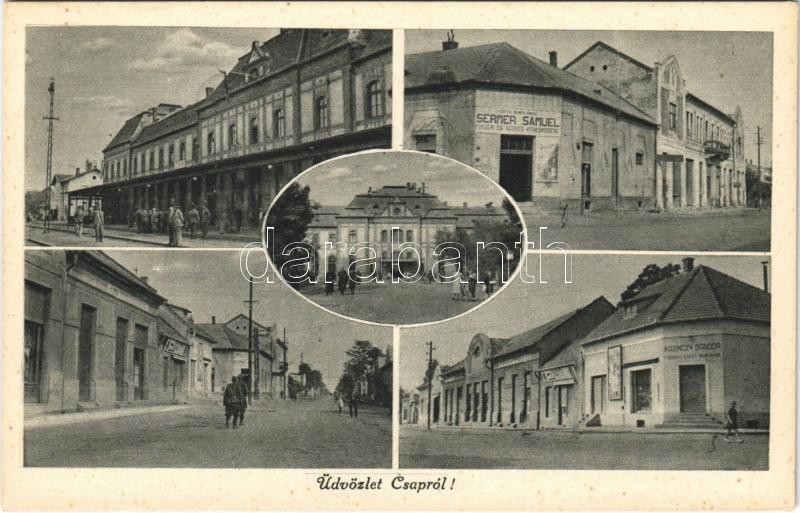 Csap, Cop, Chop; Vasútállomás, Kazincz Sándor, Sermer Sámuel üzlete, katonák / railway station, shops, Hungarian soldiers
