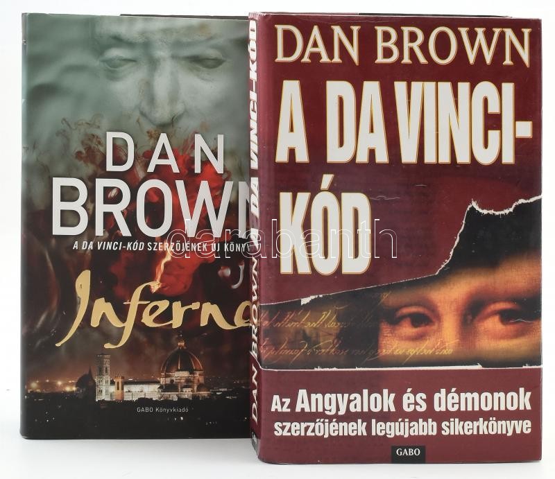 Dan Brown 2 regénye: A Da Vinci-kód. + Inferno. Ford.: Bori Erzsébet. Bp., 2004-2013, Gabo. Kiadói kartonált papírkötés, kiadói papír védőborítóban.<a href="https://www.darabanth.com/hu/gyorsarveres/423/kategoriak~Konyvek/Konyvek-Egyeb-ritkasagok~20