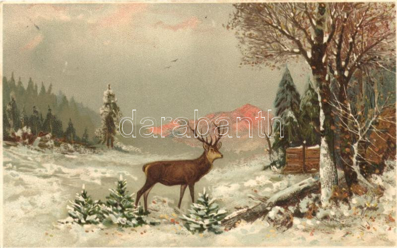 Deer in the winter forest, Meissner & Buch serie 1713, litho, s: F. W. Hayes<a href="https://www.darabanth.com/hu/gyorsarveres/417/kategoriak~Kepeslapok/Vadasz~1500078/Deer-in-the-winter-forest-Meissner-Buch-serie-1713-litho-s-F-W-Hayes~II1249272/?u