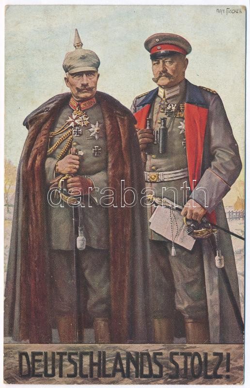 Deutschlands Stolz! / Wilhelm II and Paul von Hindenburg, German military, Wohlfahrts-Karte der Rotes Kreuz s: Art. Fischer (fl)<a href="https://www.darabanth.com/hu/gyorsarveres/417/kategoriak~Kepeslapok/Uralkodo-Politikus~1500067/Deutschlands-Stol