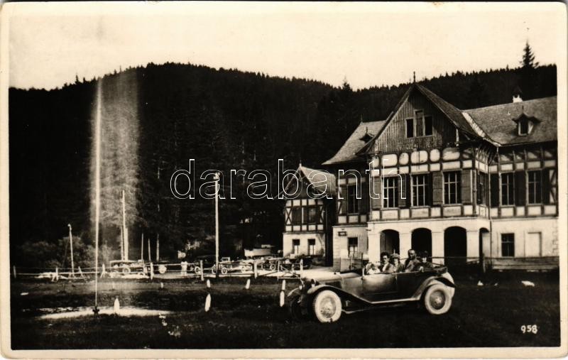 Dobsina, Dobschau; Jégbarlangi szálloda, automobil. Fejér Endre kiadása / Hotel u ladovej jaskyne / hotel near the ice cave, automobile