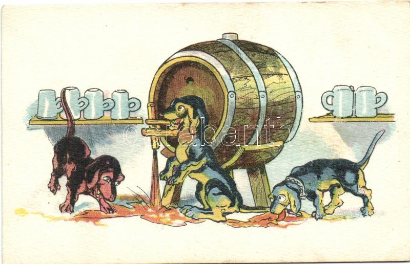 Dogs, barrel, humour, B.K.W.I. 540-2.
