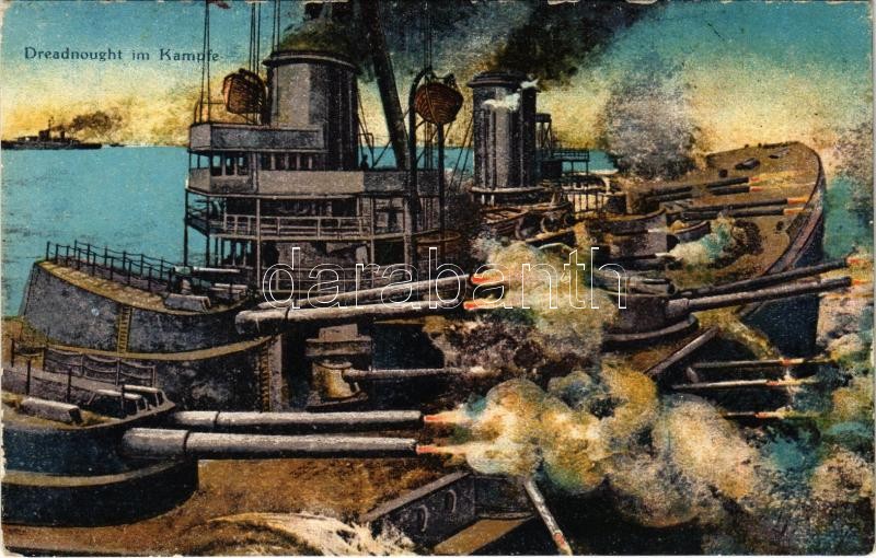 Dreadnought im Kampfe. K.u.K. Kriegsmarine / WWI Austro-Hungarian Navy art postcard. G. Costalunga, Pola 1915. (Rb)<a href="https://www.darabanth.com/hu/gyorsarveres/415/kategoriak~Kepeslapok/Hadihajo~1000060/Dreadnought-im-Kampfe-KuK-Kriegsmarine-W