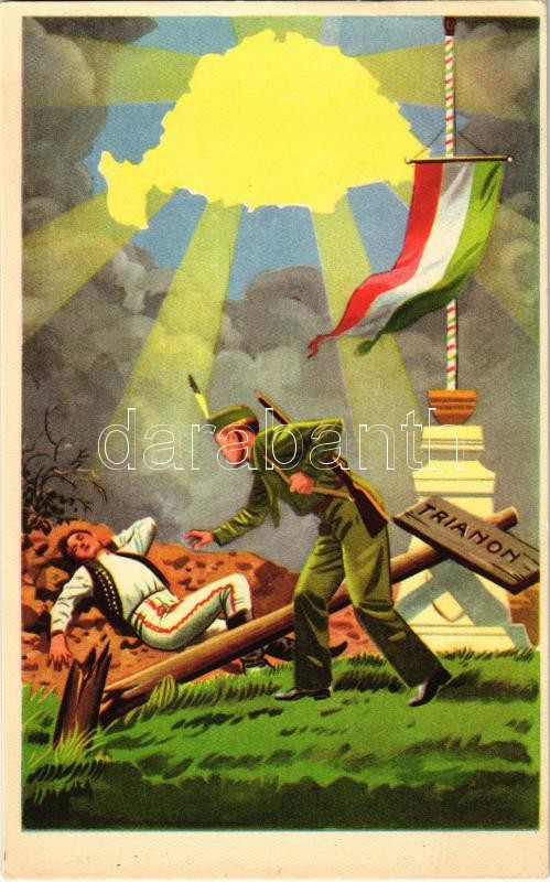 Ébreszt a magyar jövő. Kiadja az Ereklyés Országzászló Nagybizottsága / Hungarian irredenta propaganda art postcard, Treaty of Trianon (EK)<a href="https://www.darabanth.com/hu/gyorsarveres/415/kategoriak~Kepeslapok/Irredenta~1000065/Ebreszt-a-magya