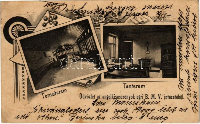 Eger, Üdvözlet az Angolkisasszonyok B.M.V. intézetéből, tornaterem, tanterem, belsők. Art Nouveau, floral (fl)<a href="https://www.darabanth.com/hu/gyorsarveres/411/kategoriak~Kepeslapok/Magyarorszag~1000005/Eger-Udvozlet-az-Angolkisasszonyok-BMV-in
