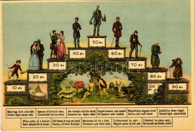 Életünket végig Dreher márkák védik / Hungarian beer advertisement, humour<a href="https://www.darabanth.com/hu/nagyaukcio/38/kategoriak~Kepeslapok/Sor-alkohol-cigaretta~15737/Eletunket-vegig-Dreher-markak-vedik-Hungarian-beer-advertisement-humour~I