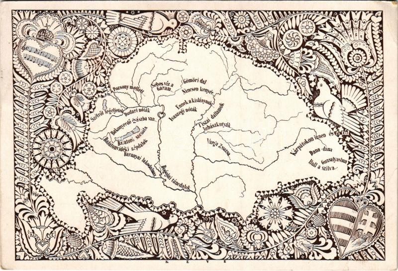 Erdélytől Felvidékig. Magyar Kórus kiadóhivatal irredenta reklám képeslapja, Trianon (EB)<a href="https://www.darabanth.com/hu/nagyaukcio/39/kategoriak~Kepeslapok/Irredenta~16082/Erdelytol-Felvidekig-Magyar-Korus-kiadohivatal-irredenta-reklam-kepesl