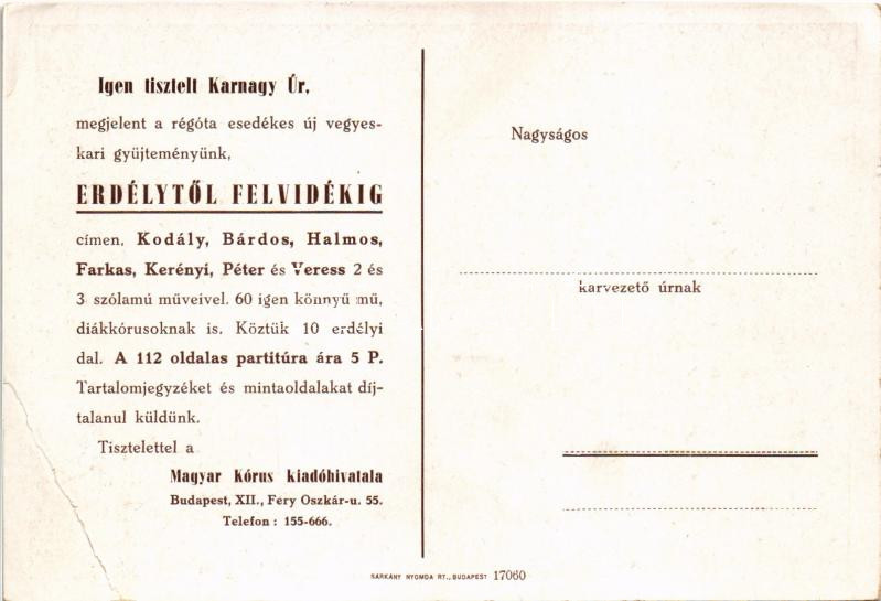 Erdélytől Felvidékig. Magyar Kórus kiadóhivatal irredenta reklám képeslapja, Trianon (EB)