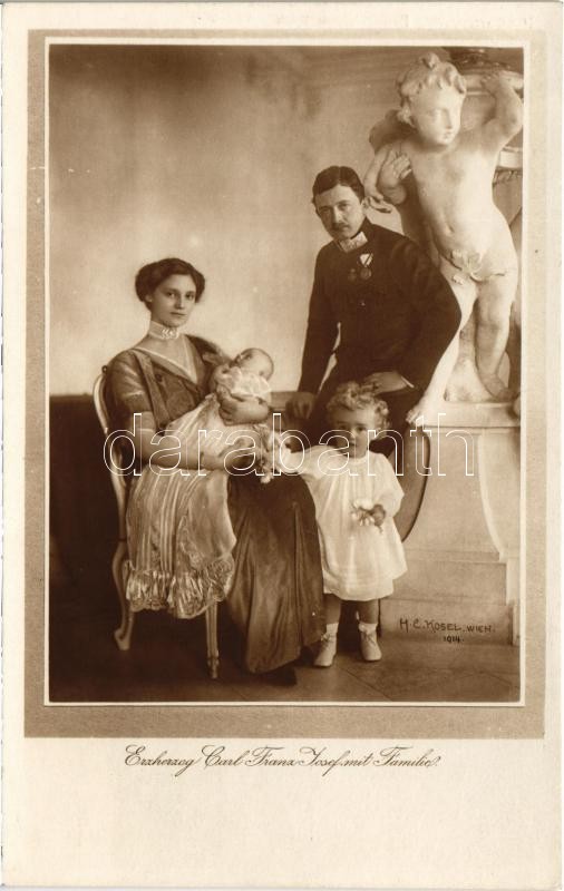Erzherzog Carl Franz Josef mit Familie / IV. Károly, Zita és a gyerekek / Charles I of Austria with Queen Zita and their children. H. C. Kosel, Wien Postkartenverlag Brüder Kohn 888-255.<a href="https://www.darabanth.com/hu/gyorsarveres/423/kategori