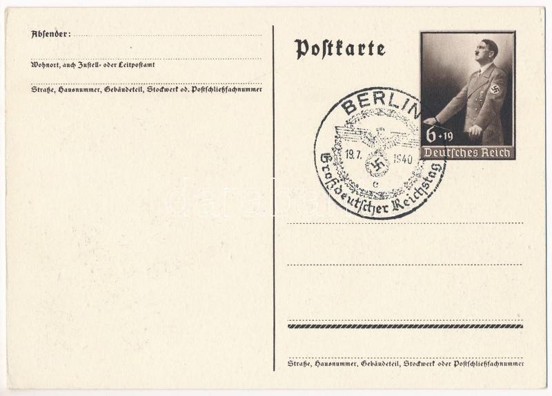 ‘Es kann nur einer siegen und das sind wir’ Adolf Hitler am 8. November 1939 / WWII NSDAP German Nazi Party propaganda postcard, Iron Cross, swastika. 6+19 Ga. s: Gottfried Klein + ‘Großdeutscher Reichstag Berlin 19. 7. 1940.’ So. Stpl.<a href="http