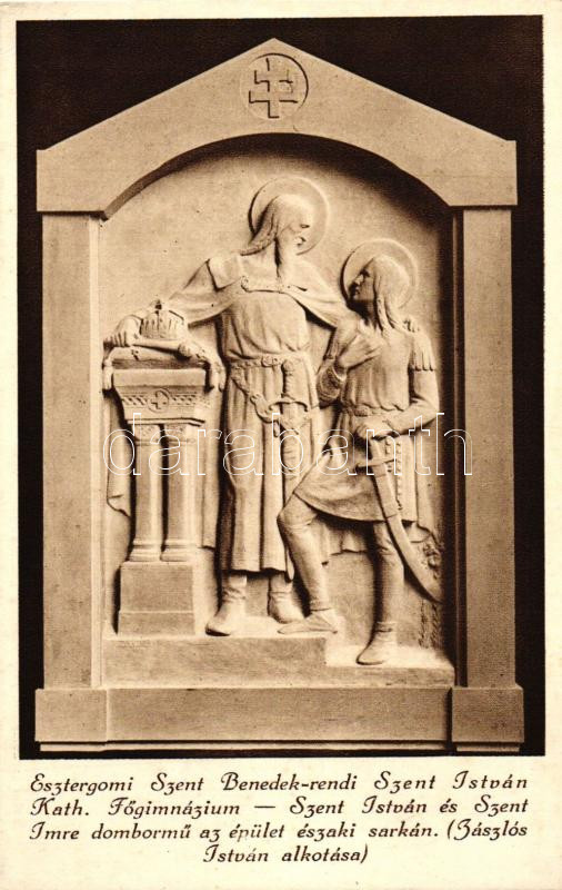 Esztergom, Szent Benedek-rendi Szent István Katolikus főgimnázium, belső; Szent István és Imre dombormű (EK)<a href="https://www.darabanth.com/hu/gyorsarveres/415/kategoriak~Kepeslapok/Magyarorszag~1000005/Esztergom-Szent-Benedek-rendi-Szent-Istvan-