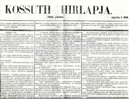 Ezernyolcszáznegyvennyolc. Kossuth Hirlapja. 1848. 30. szám. Pesten, pénteken augusztus 4. 1848. Felelős szerk. Bajza József.