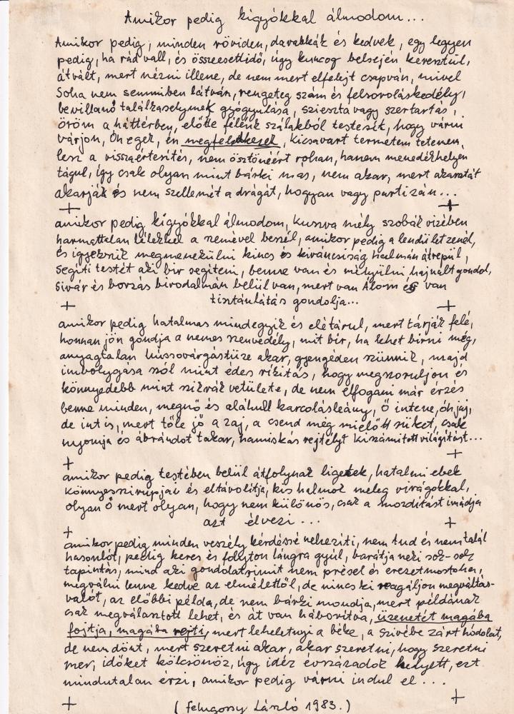 Felugossy László (1947-) kézírat.