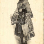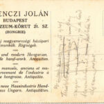 Ferenczi Jolán régi és új háziipari kézimunkák, népviseletek, parasztbabák, régiségek. Budapest V. Múzeum körút 21. / Hungarian shop advertisement card (EK)
