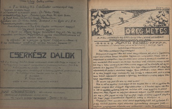 Folyóirat. Cserkészet. Öreg Hetes. 1926. Folyóirat. Cserkészet. Öreg Hetes. 1926. A 7. sz. Verbőczy R. G. Erős Gusztáv cserkészcsapat öregrajának hivatalos lapja. Első évfolyam 1-6. sz. (egybekötve). Szerk. Márkus Miklós. Kőnyomatos sokszorosított lap.