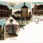 Freiburg im Breisgau, Martinsthor, Kaufhaus, Schwabenthor, Rathhaus, Braut- u. Festtracht vom Schwarzwald / gates, shopping house, town hall, folklore.Louis Glaser Art Nouveau, floral, litho<a href="https://www.darabanth.com/hu/nagyaukcio/38/kategor