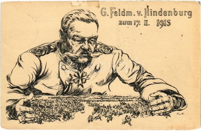 G. Feldm. v. Hindenburg zum 17. II. 1915 / WWI German military propaganda (EM)<a href="https://www.darabanth.com/hu/gyorsarveres/423/kategoriak~Kepeslapok/Katonai~1500073/G-Feldm-v-Hindenburg-zum-17-II-1915-WWI-German-military-propaganda-EM~II269144