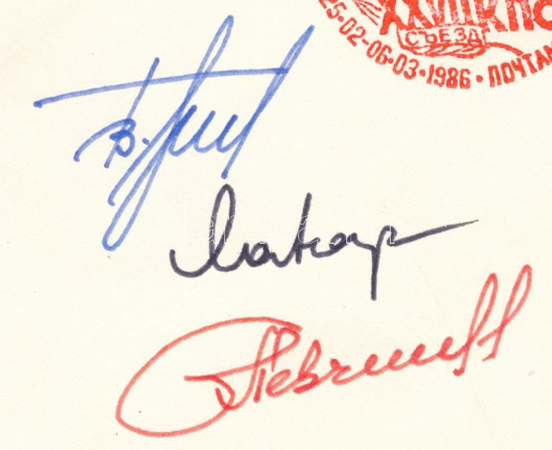 German Tyitov (1935-2000), Musza Manarov (1951- ) és Anatolij Levcsenko (1941-1988) orosz űrhajósok aláírásai emlékborítékon / Signatures of German Titov (1935-2000), Musa Manarov (1951- ) and Anatoliy Levchenko (1941-1988) Russian astronauts on envelope