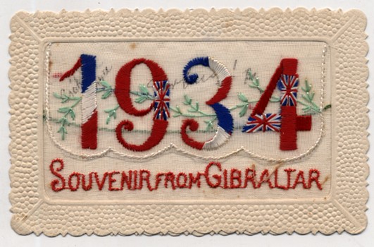 Gibraltár. Souvenir from Gibraltar. Gibraltár. Souvenir from Gibraltar. Vintage selyem hímzett képeslap.