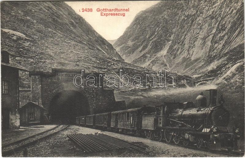Gotthardtunnel (MDCCCLXXXII), Expresszug / Gotthard railway tunnel, locomotive<a href="https://www.darabanth.com/hu/gyorsarveres/417/kategoriak~Kepeslapok/Svajc~1500081/Gotthardtunnel-MDCCCLXXXII-Expresszug-Gotthard-railway-tunnel-locomotive~II23422
