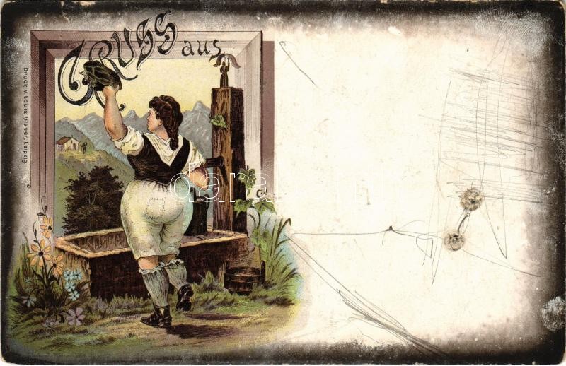 Gruss aus… / highlander folklore. Druck v. Louis Glaser. Art Nouveau, floral, litho (b)