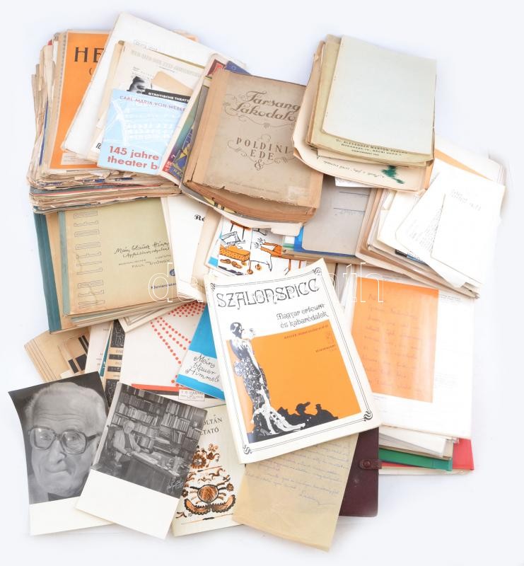 Gyöngy Pál (1902-1990) zeneszerző óriás hagyaték tétele. Nagyrészt kották, és nyomtatványok, de közte néhány személyes okmány, kézirat és fotó is…stb Változó állapotban.