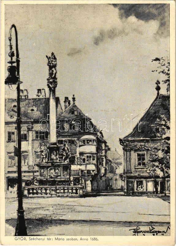 Győr, Széchenyi tér, Mária szobor. Anno 1686. Kiadja Tóth János s: Pfannl Egon (EK)