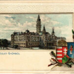Győr, Városháza. Szecessziós dombornyomott címeres litho. Nitsmann J. Passepartoutkarte Art Nouveau, Emb. litho (lyukak / pinholes)<a href="https://www.darabanth.com/hu/gyorsarveres/440/kategoriak~Kepeslapok/Magyarorszag~2000005/Gyor-Varoshaza-Szece