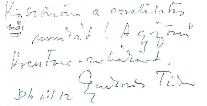 Gyurkovics Tibor (1931-2008) Gyurkovics Tibor (1931-2008) költő, író, pszichológus autográf soraival ellátott üdvözlőkártya.