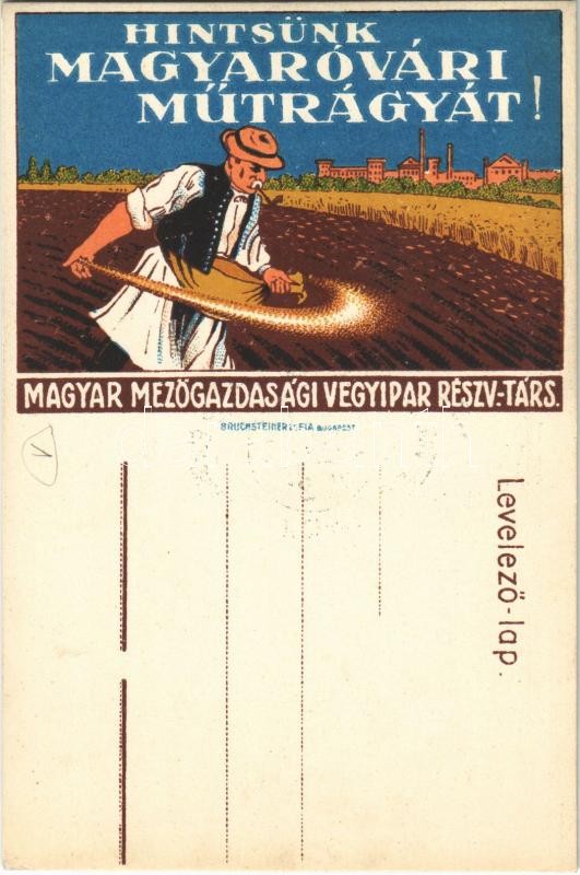 Hintsünk magyaróvári műtrágyát! Bruchsteiner és Fia / Hungarian fertilizer advertisement + ‘1945-1946 Magyarország Felszabadulásának Évfordulója’ So. Stpl.<a href="https://www.darabanth.com/hu/gyorsarveres/423/kategoriak~Kepeslapok/Reklam~1500083/Hi