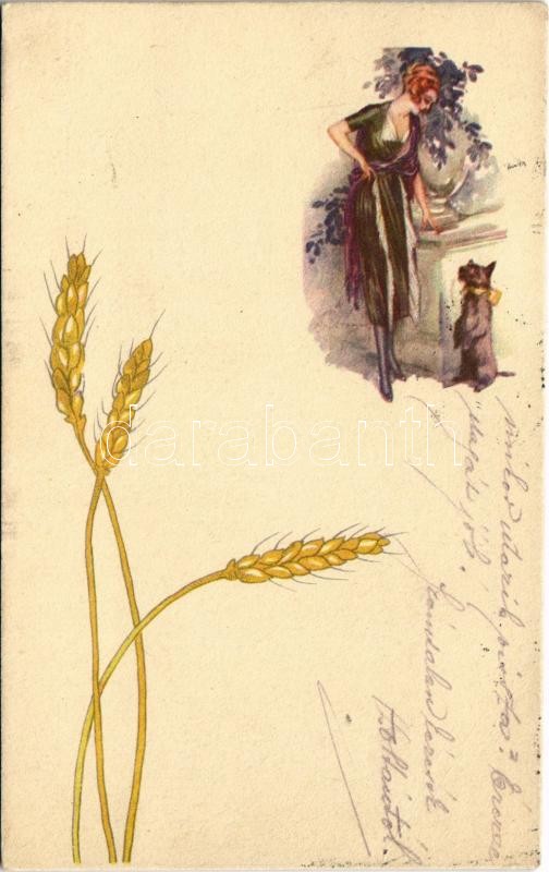 Hölgy kutyával, olasz búzakalászos művészlap / Lady with dog. Italian art postcard, Anna & Gasparni 482 M-3. (EK)<a href="https://www.darabanth.com/hu/gyorsarveres/423/kategoriak~Kepeslapok/Muveszlapok~1500080/Holgy-kutyaval-olasz-buzakalaszos-muves