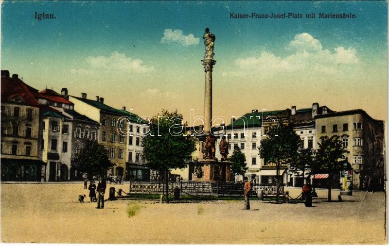 Jihlava, Iglau; Kaiser Franz Josef Platz mit Mariensäule / square, statue